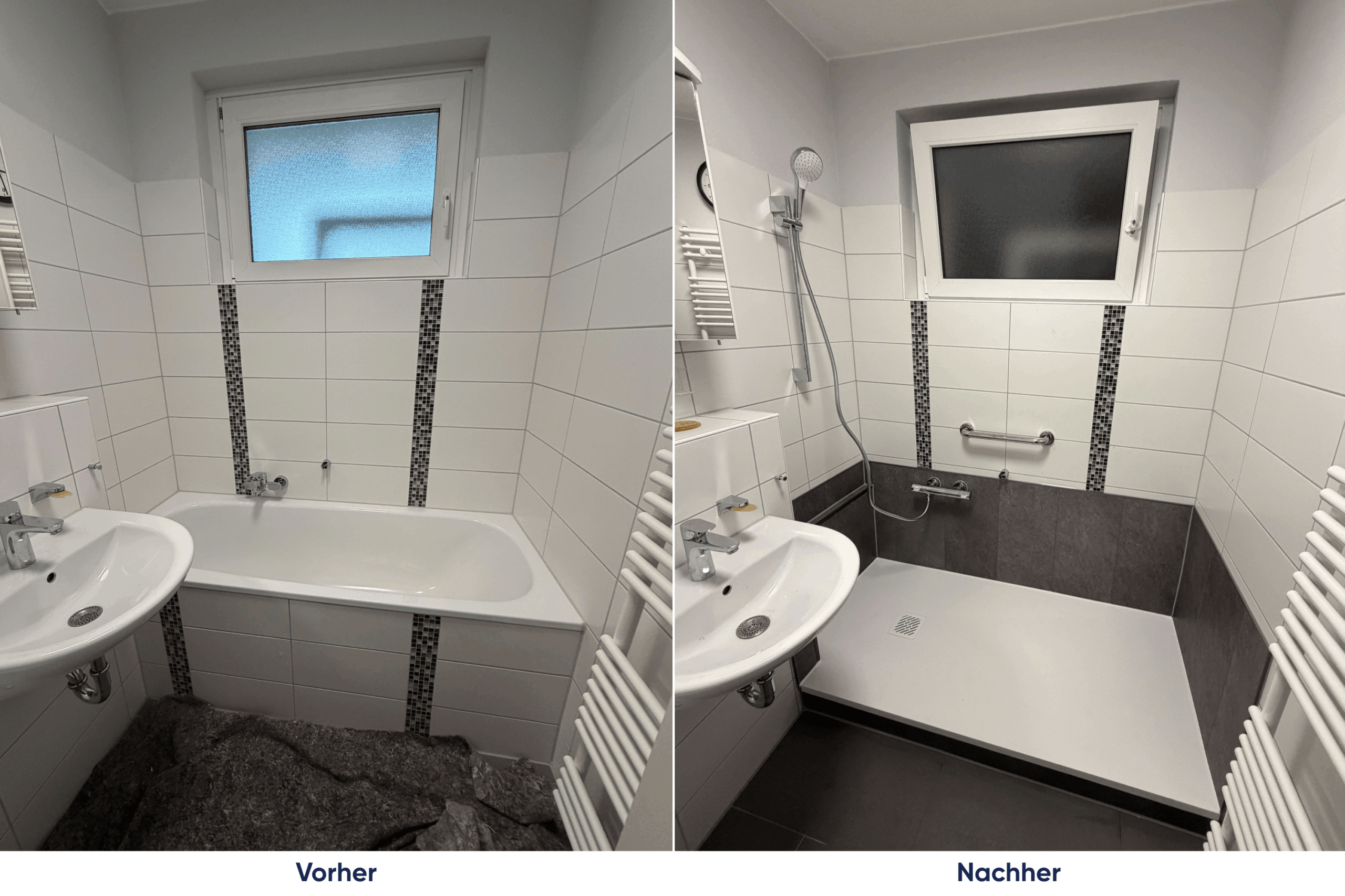 „Ich bin sehr zufrieden. Vom Erstkontakt, über die Abwicklung mit der Kasse, die kurze Arbeitszeit von ein paar Stunden, das verarbeitete, hochwertige Material, die freundlichen Monteure bis hin zur sauberen Übergabe. Ich freue mich sehr über meine neue Dusche. Vielen Dank!“
